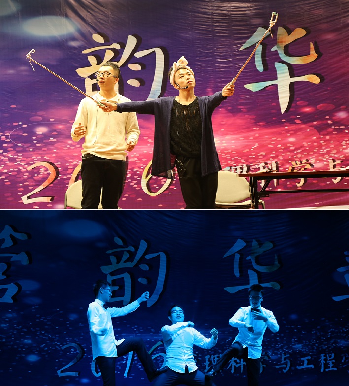 研究生们的表演同样活力四射,《研究生的那点事儿》以访谈回忆的形式展现了30年前的管工生活。研究生们一扫“老学姐老学长”的严肃正经,活泼的二人转,男神争夺战,将晚会又一次推上高潮。还有投资13亮点多多的《白日梦》,在梦中睡去,在梦中醒来,炫酷的荧光舞不仅赢得全场赞叹,更让他们的节目被评为“最受欢迎节目”。