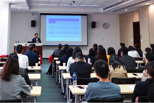 首先,陈俊华教授对全体同学表示了祝贺,对中财华路商公司对投资学在职高级研修班的大力支持表示了感谢。他表示本项目的筹备过程投入了大量的精力,项目设立的宗旨是为员工提升学历、未来发展打开上升通道。他希望全体学员按照研究生的标准严格要求自己,遵守公司相关规章制度,认真完成学业。随后,陈俊华教授简要介绍了全国同等学力研究生教育的发展情况以及本项目的筹备过程,对公司的团队情况、在职高级研修班的课程设置、结业情况以及同等学力人员题库考试和申硕要求做了详细解读。最后,他对全体学员表达了殷切希望,希望大家能够从项目中学习知识、认识朋友、提升自我、保持梦想。