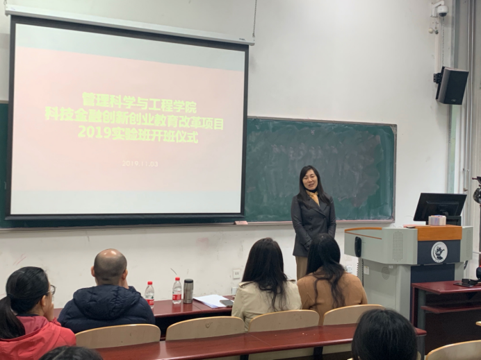 2019年11月3日上午9:30,beet365与深圳弈投孵化器合作的科技金融创新创业教育改革项目2019级实验班开班仪式于沙河校区主教102教室举行,开班仪式由经理助理高菠阳副教授主持。深圳商弈投资孵化器合伙人曹璨总经理,beet365书记姜涛,经理助理高菠阳副教授,任课教师宋砚秋副教授和陈暮紫副教授参加了科技金融实验项目的面试及开班仪式。
