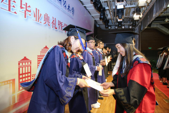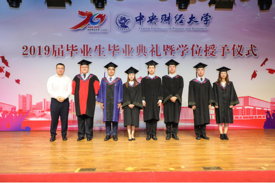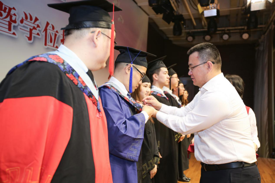 典礼结束后,是2019届毕业生学位授予仪式。党委副书记贾传亮主持,逐一宣读毕业和获得学位毕业生名单。研究生导师和本科生班主任为2019届毕业生分别颁发毕业证书和学位证书,经理李文斌逐一为毕业生拨转流苏,热情握手,寄语祝贺并合影留念。