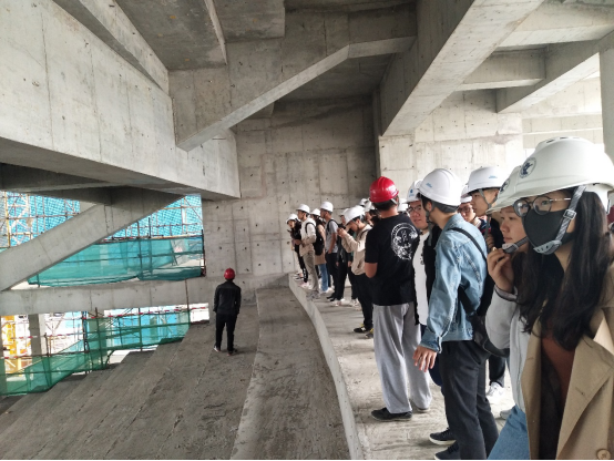 随后,同学们前往参观公司未来学术会堂的施工现场,并复习了工程识图的相关知识。同学们都很感兴趣,向负责人提出各种各样的问题,憧憬着未来可以看到的舞台效果。