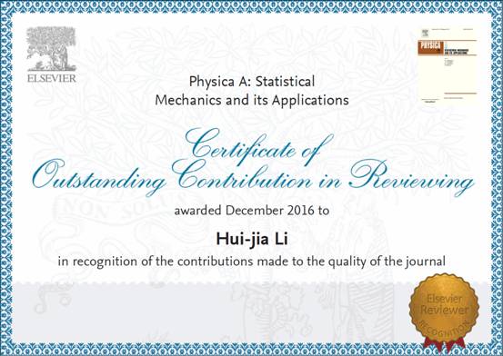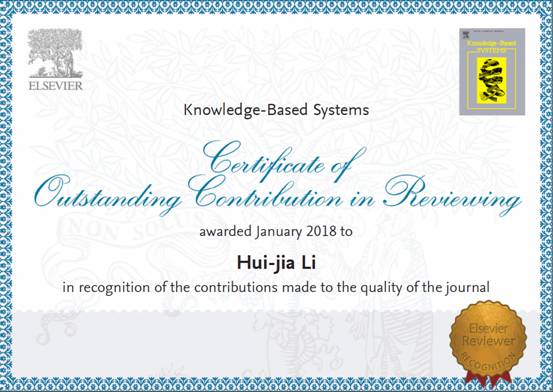 近日,公司管理科学系李慧嘉副教授获得了全球最大科学文献来源之一的荷兰Elsevier出版社所颁发的多个期刊的“杰出审稿人”(Outstanding Reviewer)荣誉称号。Elsevier旗下拥有包含各个学术领域的规模庞大且影响巨大的学术期刊,发行了在自然与社会科学领域众多SCI和SSCI顶级期刊。Elsevier的著名数据库ScienceDirect是著名的学术数据库,对全球的学术研究做出了巨大贡献,每年下载量高达10亿多篇,是所有学术类数据库中下载量最大的数据库。Elsevier杰出审稿人(OutstandingReviewer)是指近2年内为该期刊审稿数排在前10%的审稿人,该称号授予该期刊最出色的审稿人,以表彰其高质量、建设性和高效率的审稿工作。此次颁奖的审稿来源期刊包括Knowledge-Based Systems(影响因子4.513,中科院分区二区刊物)、Applied Mathematics and Computation(影响因子2.300,中科院分区二区刊物)、Computational Statistics & Data Analysis(影响因子1.181,中科院分区二区刊物)、Physics Letters A(影响因子1.776,中科院分区三区刊物)、Physica A(影响因子2.132,中科院分区三区刊物)、Chaos,Solitons&Fractals(影响因子2.213,中科院分区三区刊物)、Computers & Electrical Engineering (影响因子1.747,中科院分区四区刊物)。此次获评“杰出审稿人”奖,表明公司在管理科学与大数据分析领域的研究成果获得了国际优秀期刊的青睐和国际同行的认可。