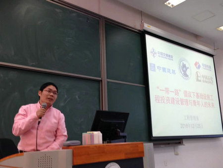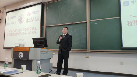 中国交建施总介绍了中国交建的发展历史和现状,并结合自己六十多个国家的工作经历,向同学们介绍了如何将工程、管理和投融资相结合,以发挥财经类院校工程管理专业员工的自身优势,展望了国际工程的巨大市场和未来前景,并欢迎同学们加入中交建系统。
