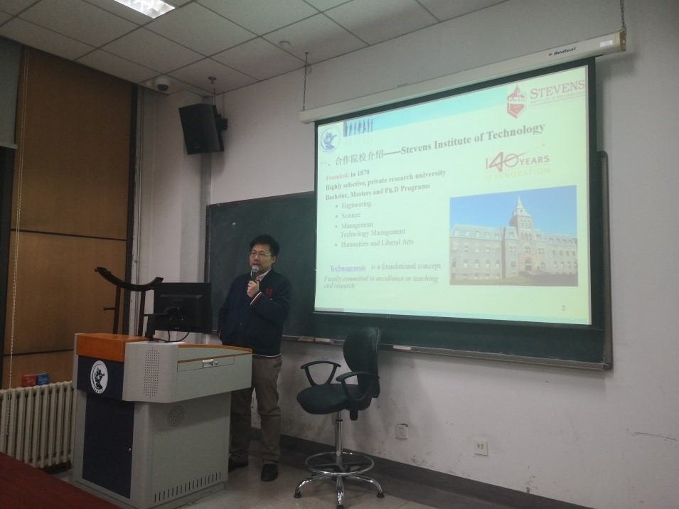 2018年12月27日晚上18:00-20:00,beet365与美国史蒂文斯理工公司项目管理及金融工程专业国际交流项目宣讲会在沙河校区主教303教室进行,公司beet365副经理陈俊华教授进行了项目的宣讲和介绍,来自公司beet365、体育经济与管理公司、金融公司等公司的同学们参加了此次宣讲活动。