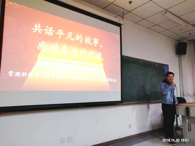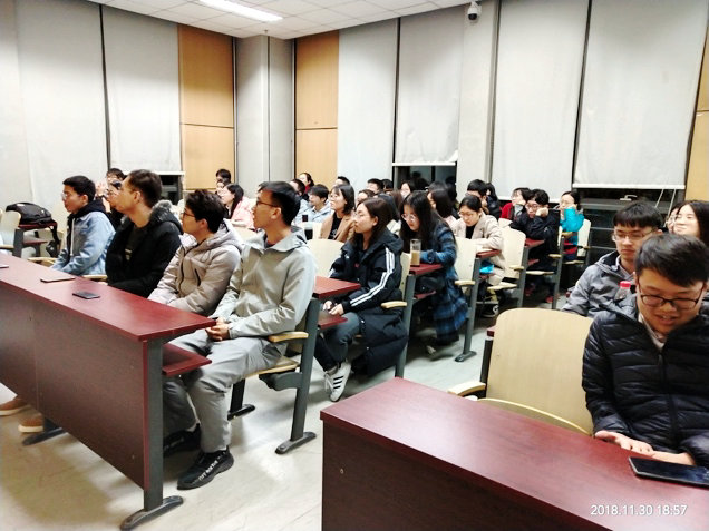 首先演讲的是多次国奖获得者学霸战昶威同学,他向大家分享了学习和科研方面的心得体会,提到自己也曾多次遭遇论文退稿,但只要刻苦学习,坚持不懈,获得荣誉是一件水到渠成的事情。同样,王倩同学也从科研论文方面结合个人经历,详细介绍了论文写作投稿的全过程,鼓励同学们珍惜时间,但行好事,莫问前程。国奖获得者17级博士汪永生认为同学们除了求职就业之外,继续深造也是一个很好的选择,并且欢迎大家加入科研团队进行学术研究,贡献自己的价值。