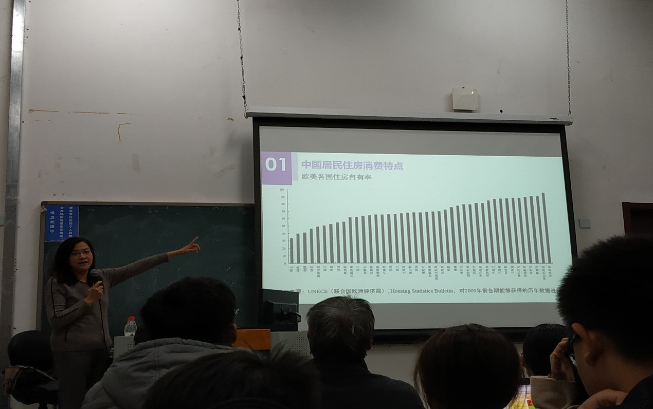 杨教授在授课前与公司教师座谈交流了房地产学科发展、专业建设、产学研等问题。授课过程中,杨教授向大家介绍了她最新的研究成果以及国际学界的重要研究成果。杨教授主要对中国居民住房消费行为研究作了介绍,具体内容包括中国居民住房消费特点、居民消费基本理论、中国居民消费行为分析、不确定对居民住房需求等方面。