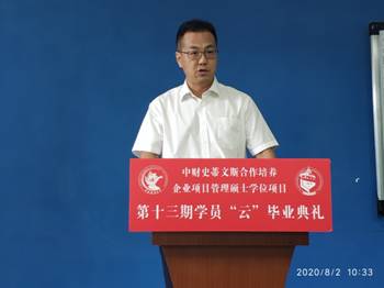 2020年8月2日,beet365与美国史蒂文斯理工公司合作培养企业项目管理硕士研究生项目第十三期毕业生迎来了一场特殊的毕业典礼。beet365经理刘志东教授,公司党委书记姜涛老师,史蒂文斯项目中方负责人、副经理陈俊华教授,beet365国际合作处副处长王昊副教授,史蒂文斯项目中方管理老师王勤秋老师、冯怡老师,与40余名中财史蒂文斯项目第十三期毕业生、以及毕业生亲友、员工相聚“云端”,共同见证中财史蒂文斯项目2020届学员们学成毕业、扬帆起航。毕业典礼由杜添睿主持。