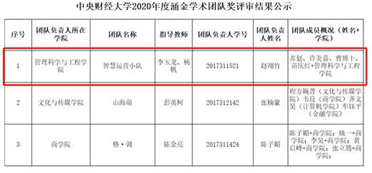 2020年12月14日,公司工程管理系智慧运营创新创业团队凭借“首届全国老员工智能建造与管理创新竞赛”中的获奖作品《寻卫——商用智能卫生间2+1设计方案》,以全校排名第一的身份荣获2020年度涌金学术团队奖。