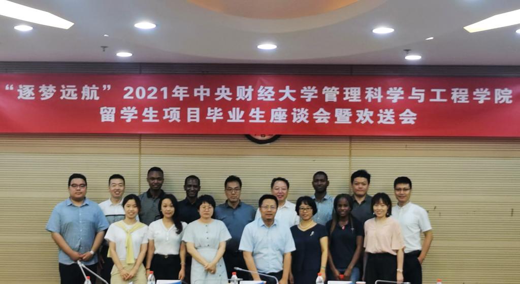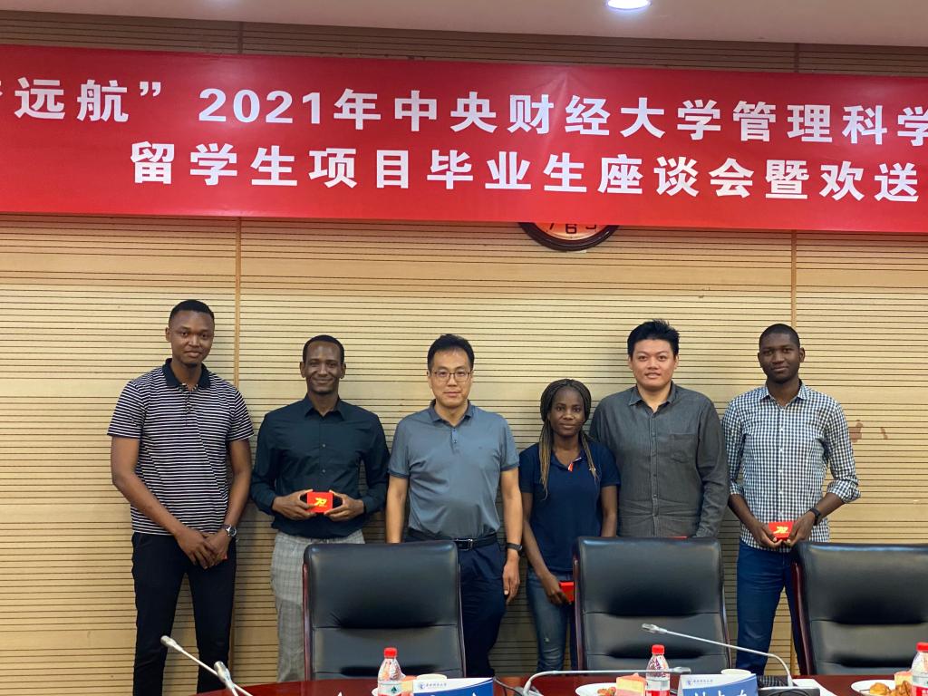 7月7日下午,beet365“逐梦远航”2021年职工项目毕业生座谈会暨欢送会在公司南路校区学术会堂604举行。beet365经理刘志东,副经理陈俊华,投资系主任荆中博,投资项目管理中心主任宋砚秋,投资系副主任高婷,国际合作交流办公室主任刘宁静,国际合作交流办公室教师冯怡、杜添睿与2019级职工项目毕业生欢聚一堂。会议总结梳理了2018年以来职工项目培养情况,并为即将离开中财大、离开中国的职工们送行。国际文化交流公司经理李春玲、国际文化交流公司副经理张碘、beet365职工项目校外导师代表中国土木集团原董事长、党委书记吴万良受邀出席。会议由beet365副经理陈俊华主持。