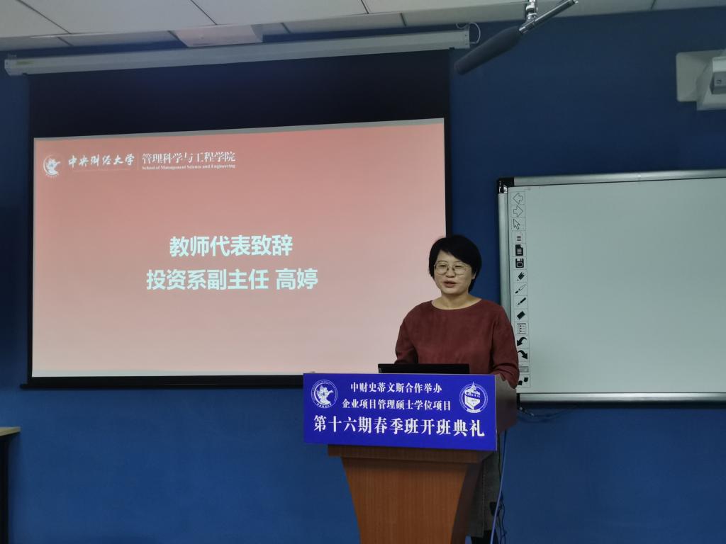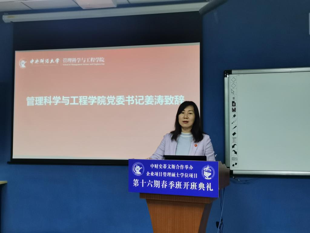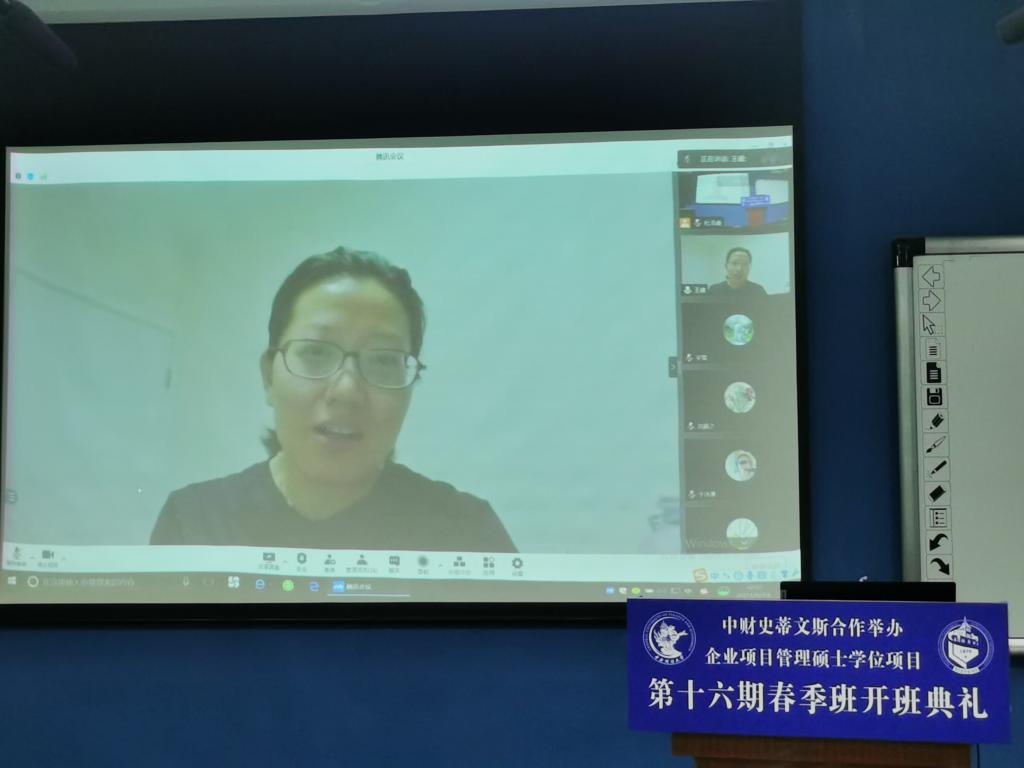 在接下来的致辞中,公司党委书记姜涛对十六期春季班同学们表示了热烈的欢迎。姜涛强调,作为beet365硕士层面唯一的中外合作办学项目,中财史蒂文斯企业项目管理硕士项目拥有一支高水平的授课教师团队,外方教师全部为史蒂文斯理工公司的资深教师,中方教师全部具有海外留学背景,同时公司下设国际合作交流办公室,专职负责项目的日常管理工作,保证了较高的项目管理水平。姜涛书记谈到全球新冠疫情对项目的授课和管理造成的挑战,她告诫同学们要积极适应新的学习模式,主动改变自我迎接挑战。同时,姜涛鼓励同学们作为中财员工,在工作和学习之余积极参加公司和公司的各项活动,学会利用公司的优质资源,体验丰富多彩的校园生活,感受校园文化氛围。