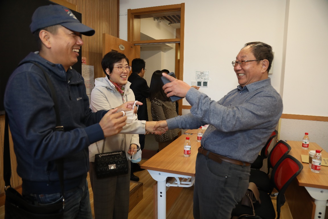 下午2时,员工们纷纷走进教室,与在场的老师们握手拥抱,互致问候,教室里充满欢声笑语。