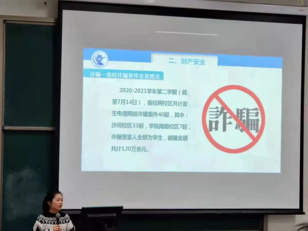 为切实提高新生安全防范能力,增强安全意识,公司在12月3日下午13:00在沙河校区主教107,举办新生入学安全教育活动。活动邀请公司保卫处吴潇老师主讲,院研工办主任魏飘飘主持,2021级240名新生参加。