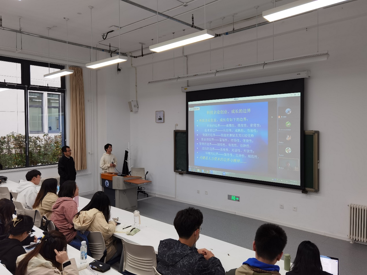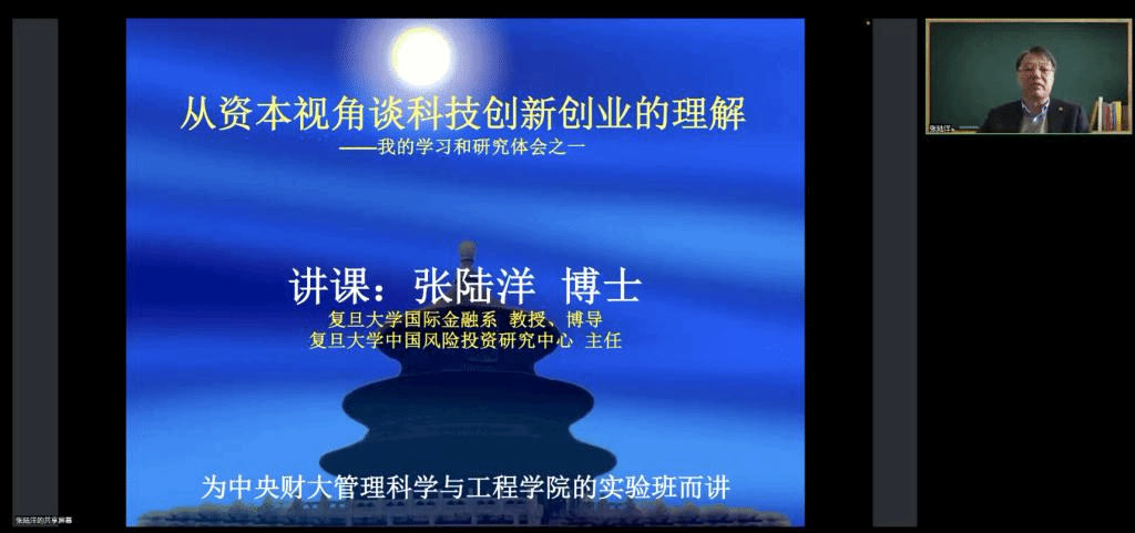 开班仪式后,应刘志东经理邀请,复旦大学国际金融系教授、博士生导师,复旦大学中国风险投资研究中心主任张陆洋教授为同学们进行了题为《从资本视角谈对科技创新创业的理解》的主题讲座。张陆洋教授首先对自己在创新创业领域的经历与成果进行了简要介绍,并基于《科技创新创业基础》这一学术专著展开了本次讲座的内容。张陆洋教授指出,想理解科技创新创业,硅谷模式是一个很好的切入点。硅谷通过创造一个模式、设计两个机制、解决三个关键问题、形成和完善四个要素、构建五大法律政策体系,最终使其成为了全世界创新创业与风险投资的中心。在对硅谷模式进行详细剖析后,张陆洋教授对《科技创新创业基础》学术专著的全书结构与重点内容进行了介绍。《科技创新创业基础》旨在以建设创新性国家发展战略为目标,推进科技创新创业,全书包括科技创新创业商业计划、科技创新创业者和团队建设、科技创新创业的融资、科技创新创业生态系统、科技创新创业企业的创建和治理机制、科技创新创业过程风险分析、科技创新创业技术经济学、科技创新创业项目实践和典型案例等章节,重点讨论了基于创新创业过程的微观现金流分析、企业创业成长的阶段特性与成长边界、科技企业创业过程中的动态风险、科技创新创业过程中的知识产权保护、科技创新创业驱动经济发展等内容。最后,张陆洋教授结合我国现实与国际形势,面向未来,对我国建设创新型国家之路进行了展望。在主题讲座结束后,现场数名实验项目学员结合讲座内容与个人发展与张陆洋教授进行了深入交流,同学们均受益匪浅。