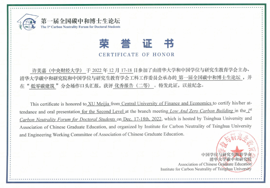 2022年12月17至18日,公司2021级硕博连读生许美嘉参加首届“全国碳中和博士生论坛”,在“低零碳建筑”学术分会场中作了题为《“全经济系统”视角下装配式建筑隐含碳足迹核算研究——来自“京-津-冀”城市群的启示》的研究报告,获得二等奖。该研究基于我国2017年经济数据建立了混合多区域投入产出模型,细化了以往省级尺度的模型架构,在城市层面对京津冀城市群装配式建筑从“摇篮到大门”的碳足迹进行了高分辨率量化。研究结果揭示了装配式建筑碳足迹在“城市-城市群-全国”三层空间尺度的流动模式,识别了装配式建筑供应链上的高排放行业,为我国城市群的低碳建设提供政策参考。该研究由公司建设经济与管理系常远老师指导,并受beet365“科教融合研究生学术新星孵化计划”支持。