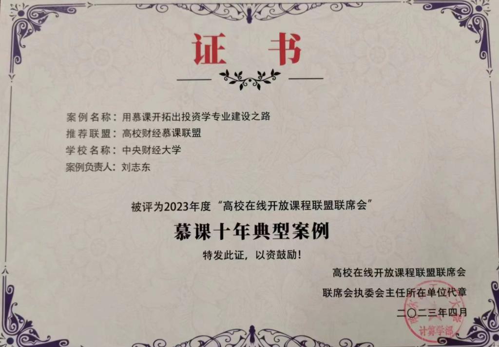 5月13日,第四届全国慕课教育创新大会暨高校在线开放课程联盟联席会2023年会召开。大会发布了高校在线开放课程联盟联席会“慕课十年典型案例”,公司刘志东教授的《用慕课开拓出投资学专业建设之路》案例入选。