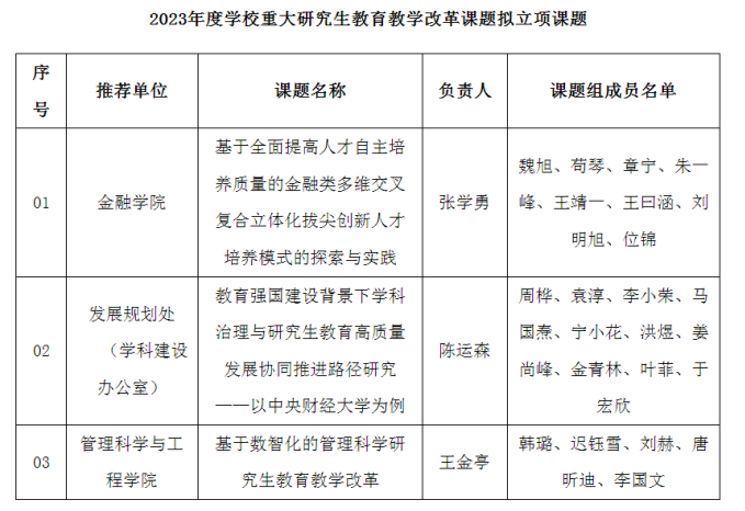 根据《关于组织开展2023年度研究生公司产品改革研究课题申报工作的通知》(研字〔2023〕47号),研究生院组织了2023年度公司重大研究生公司产品改革研究课题和公司专项研究生公司产品改革研究课题申报与立项评审工作。经教师申报、公司推荐、专家组评审,拟对36个课题予以立项。其中,公司王金亭老师的《基于数智化的管理科学研究生公司产品改革》获公司重大研究生公司产品改革研究课题立项。