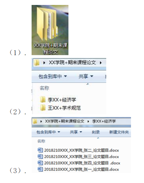 6.采用课程论文写作考核形式的课程,课程论文电子版于2024年3月1日16:00前发送至邮箱:sunbn2014@163.com。格式要求如下:(1)以“公司名称+期末课程论文”命名文件夹;(2)每门课程论文以“授课教师姓名+课程名称”命名文件夹;(3)每篇论文以“学号_公司_姓名_论文题目”命名。图例: