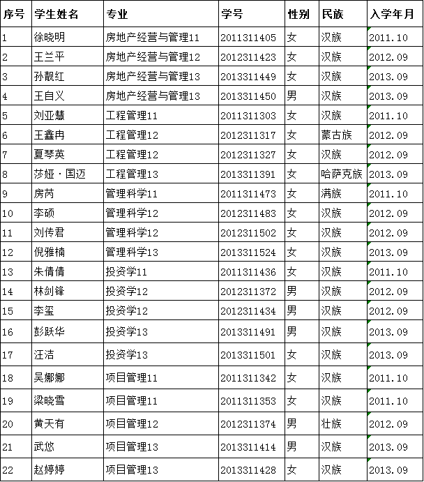 2013-2014学年度本科生国家奖学金拟获奖员工初审名单表