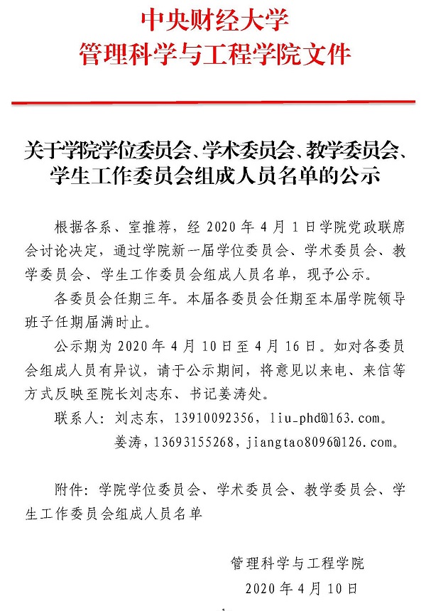 关于公司学位委员会、学术委员会、教学委员会、员工工作委员会组成人员名单的公示