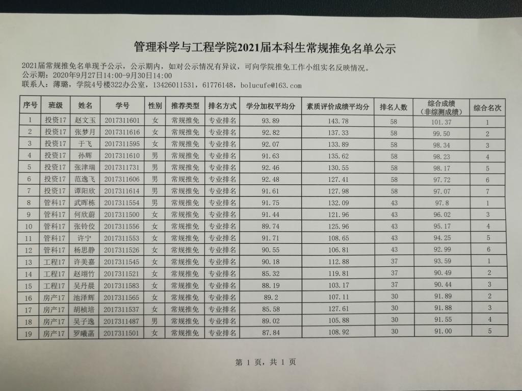 2021届本科生常规推免名单公示