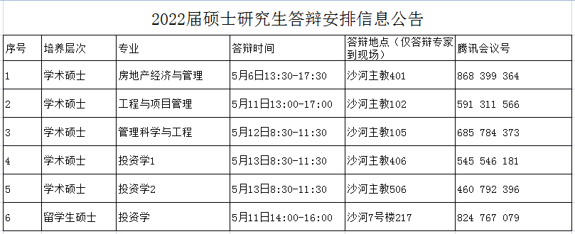 研究生 | 2022届硕士研究生学位论文答辩信息公告