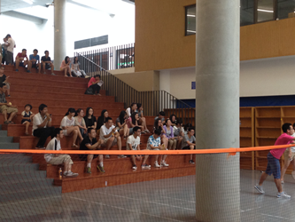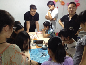 大家在下午三点左右到达大活,首先将全班分成两组,李毅和郑丁文为组长。组长调兵遣将参加各个活动。前面的比赛两组互有胜负,不分伯仲。转战青年汇,两队成员在象棋、五子棋和桌球上激烈战斗。最终两队四比四打成平手。李毅组在终极安全知识问答中占据上风,获得了可以用勺子吃西瓜的权利。