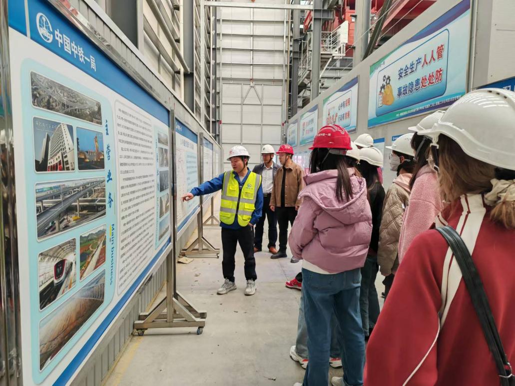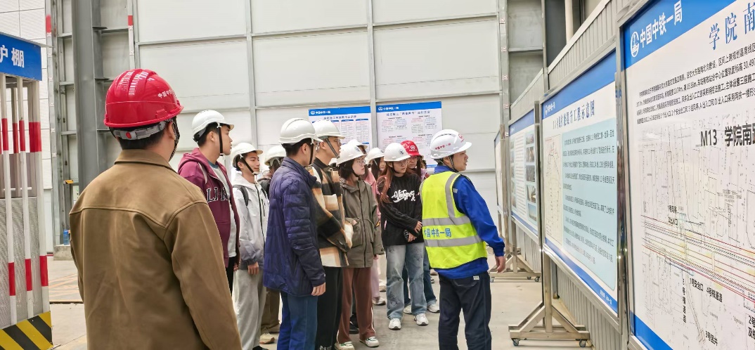 随后,同学们进入了施工现场,参观了土建施工已完成的环节,并听取了负责人关于工程进度安排与相关技术难点的详细讲解。通过实地观察和现场讲解,尤其是对城市核心区地下空间工程的施工安排有了深入认识,同学们也对地铁项目施工的实际情况有了更直观的认识。