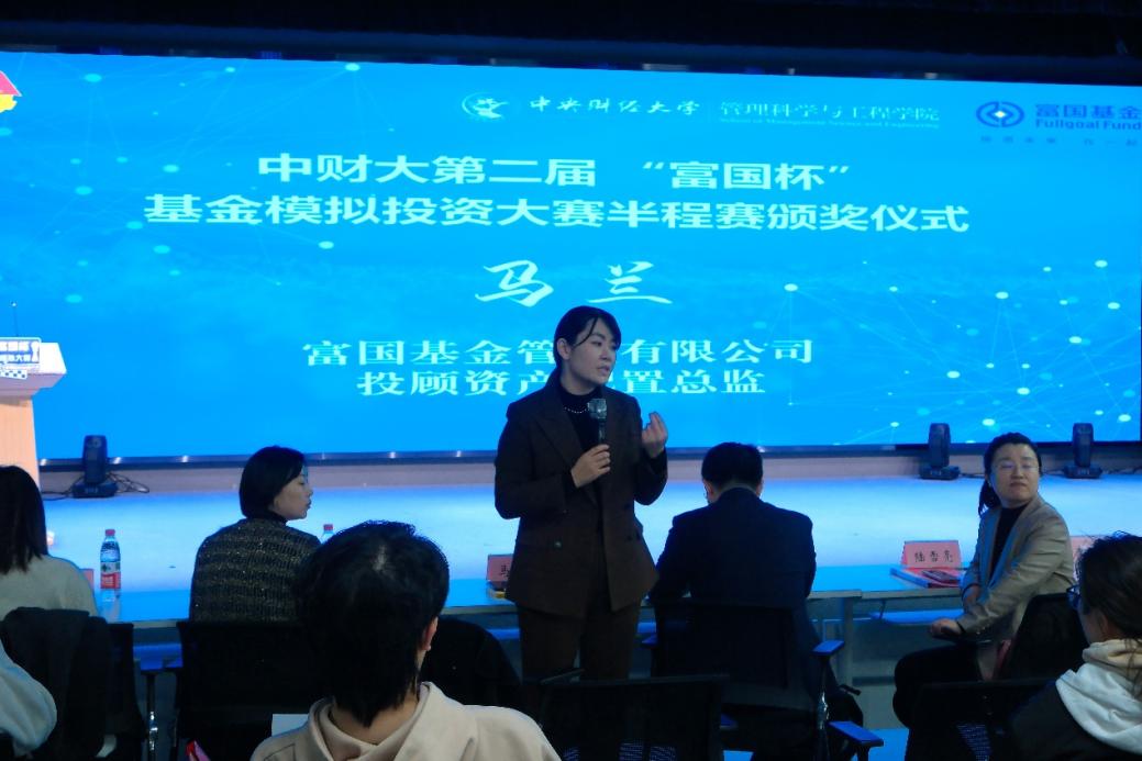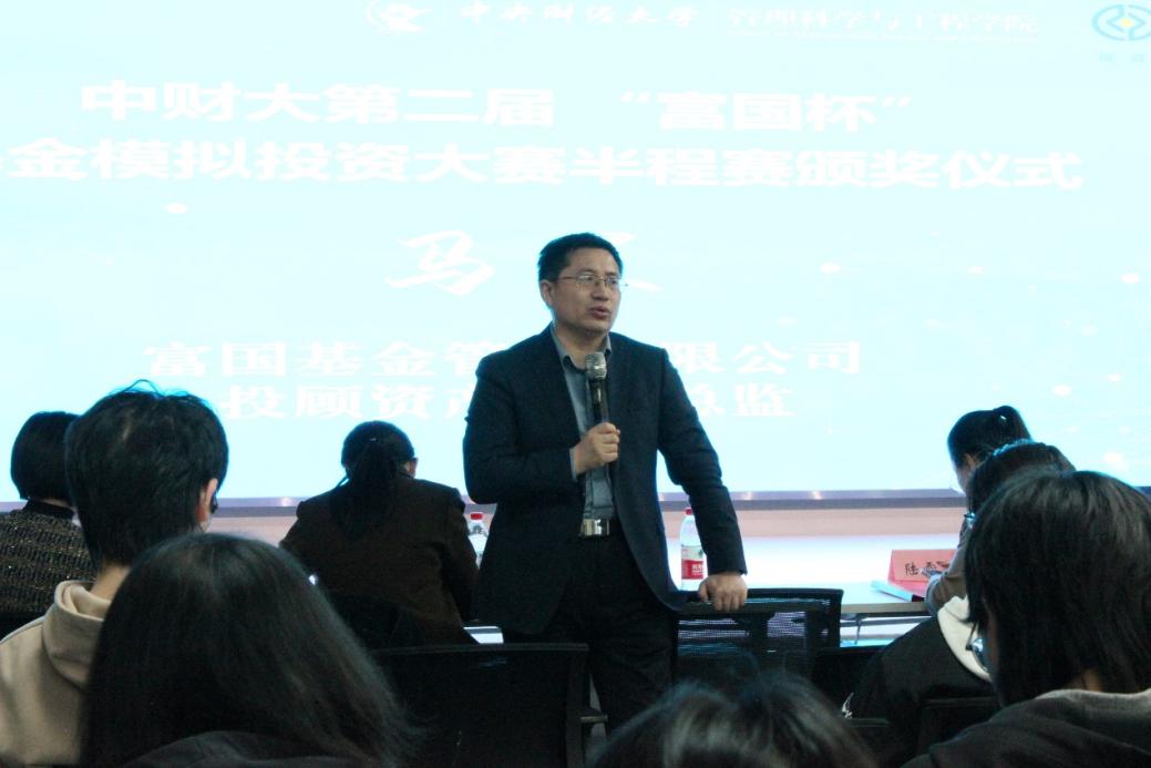 3月19日下午,中财大第二届“富国杯”基金模拟投资大赛半程赛颁奖仪式在沙河校区金色大厅顺利举行。富国基金管理有限公司首席策略分析师、营销管理部副总经理马全胜,富国基金投顾资产配置总监马兰,富国基金营销管理部高级经理李惠敏,beet365校团委副书记陆雪亮,管理科学与工程公司党委副书记、纪委书记胡博,beet365团委副书记和小颖出席本次活动。