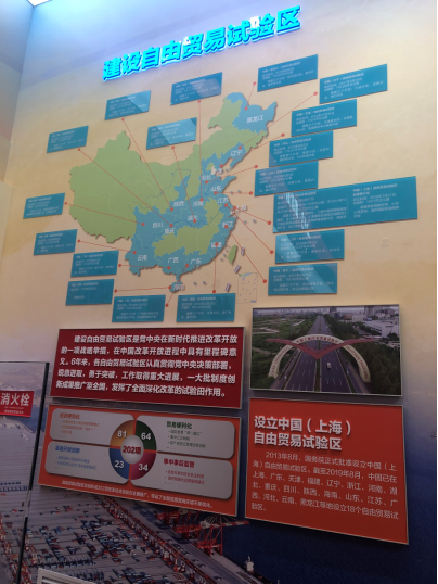 在“建设自由贸易试验区”展牌前,同学们驻足讨论。41年前,我们开启了改革开放的征程。如今,地图上蓝色的自由贸易试验区已经有了“半壁江山”的牌面。6年来,各自由贸易试验区认真贯彻党中央决策部署,锐意进取,勇于突破。犹记习近平主席在博鳌亚洲论坛2018年年会开幕式上以“开放创新的亚洲,繁荣发展的世界”为主题发表演讲,回顾了开放为我国带来的发展,并号召各国携手合作,实现共赢。