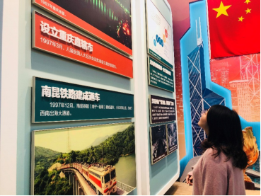 序厅、屹立东方、改革开放、走向复兴和人间正道,同学们按顺序走过展厅的五个板块。展览的内容有振奋人心的“国家大事”,比如神舟飞天、蛟龙入海、玉兔奔月、南极科考,也有四大名著电视剧播出、城镇保障性住房和易地扶贫搬迁等发生在每家每户切实改变生活的“小事”。这种从小镜头着眼、到大视角成就的展览方式,极大地提高了同学们代入感、参与感。即使我们只亲眼见证了国家成长最近的二十余年,也对70年的风雨兼程有了更切身的体会。
