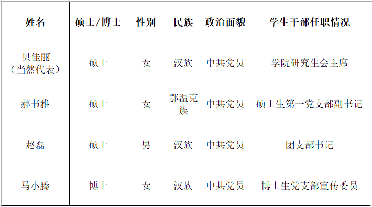 第二十七次研究生代表大会公司代表名单及相关信息如下: