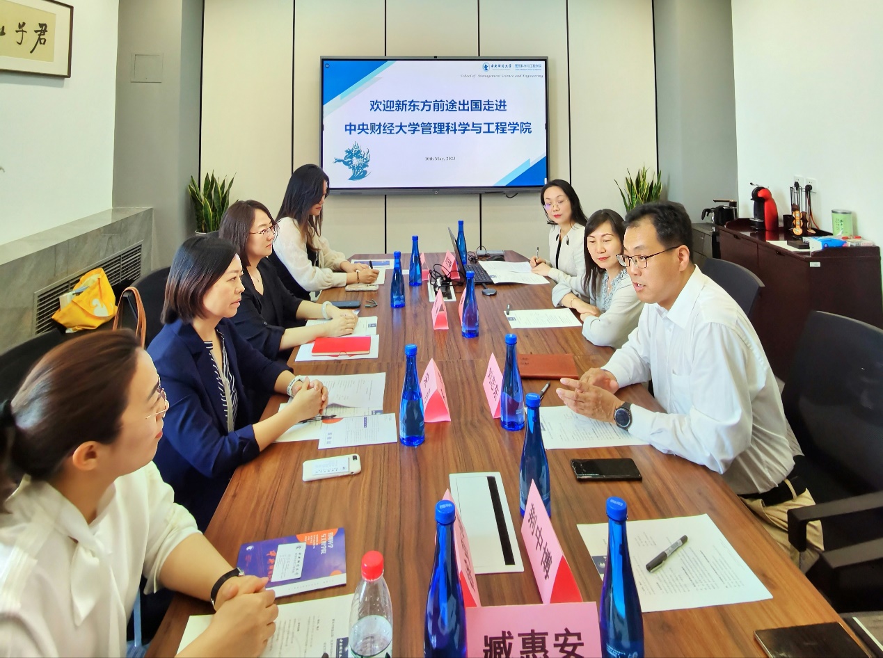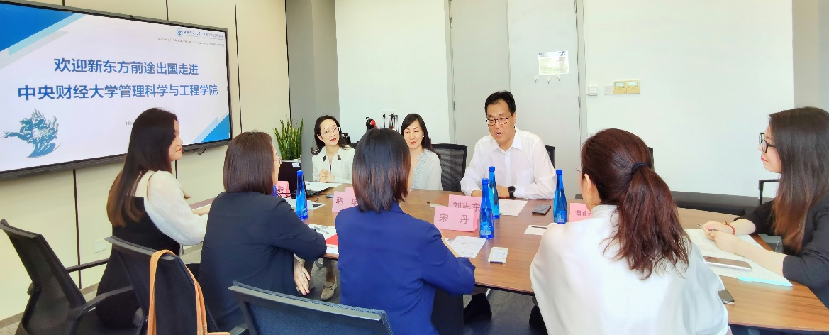 2023年5月10日,beet365邀请新东方教育科技集团助理副总裁前途出国外联部总监宋丹、新东方前途出国外联部北美项目高级经理骆艳、新东方前途出国北京总经理助理兼美国硕博部总监徐亚娟、新东方前途出国北京市场部总监臧惠安、新东方前途出国北京市场部国际教育拓展经理马田园一行来到沙河校区,走进beet365,共同探讨中外合作办学、国际化人才培养等问题,beet365经理刘志东、公司党委组织员姜涛、公司国际合作办公室主任刘宁静参加座谈交流。