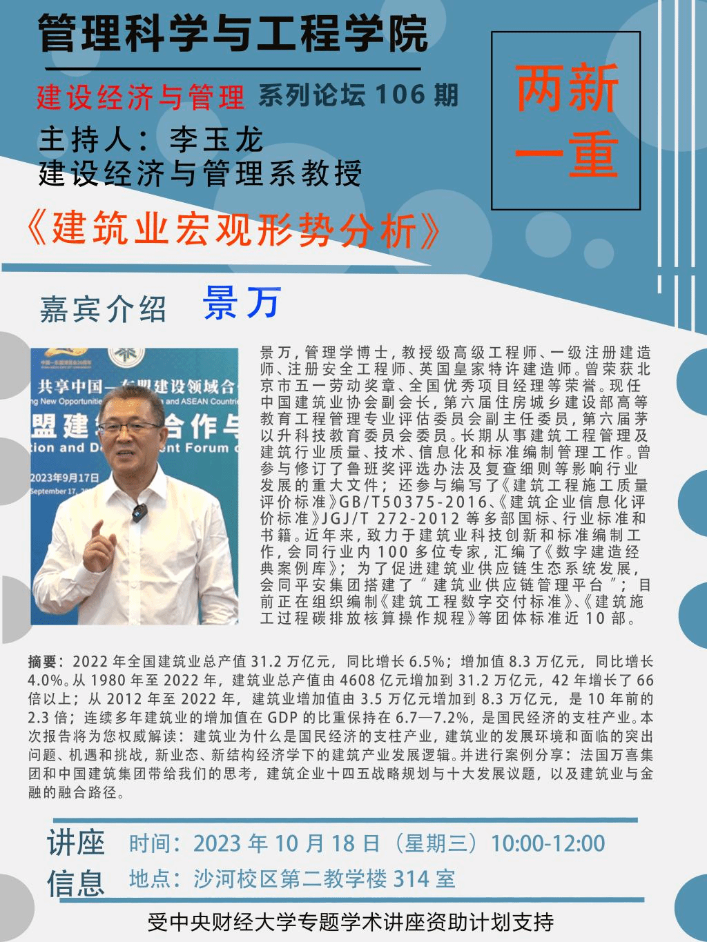 讲座 | 建设经济与管理系列讲座(第106期)
