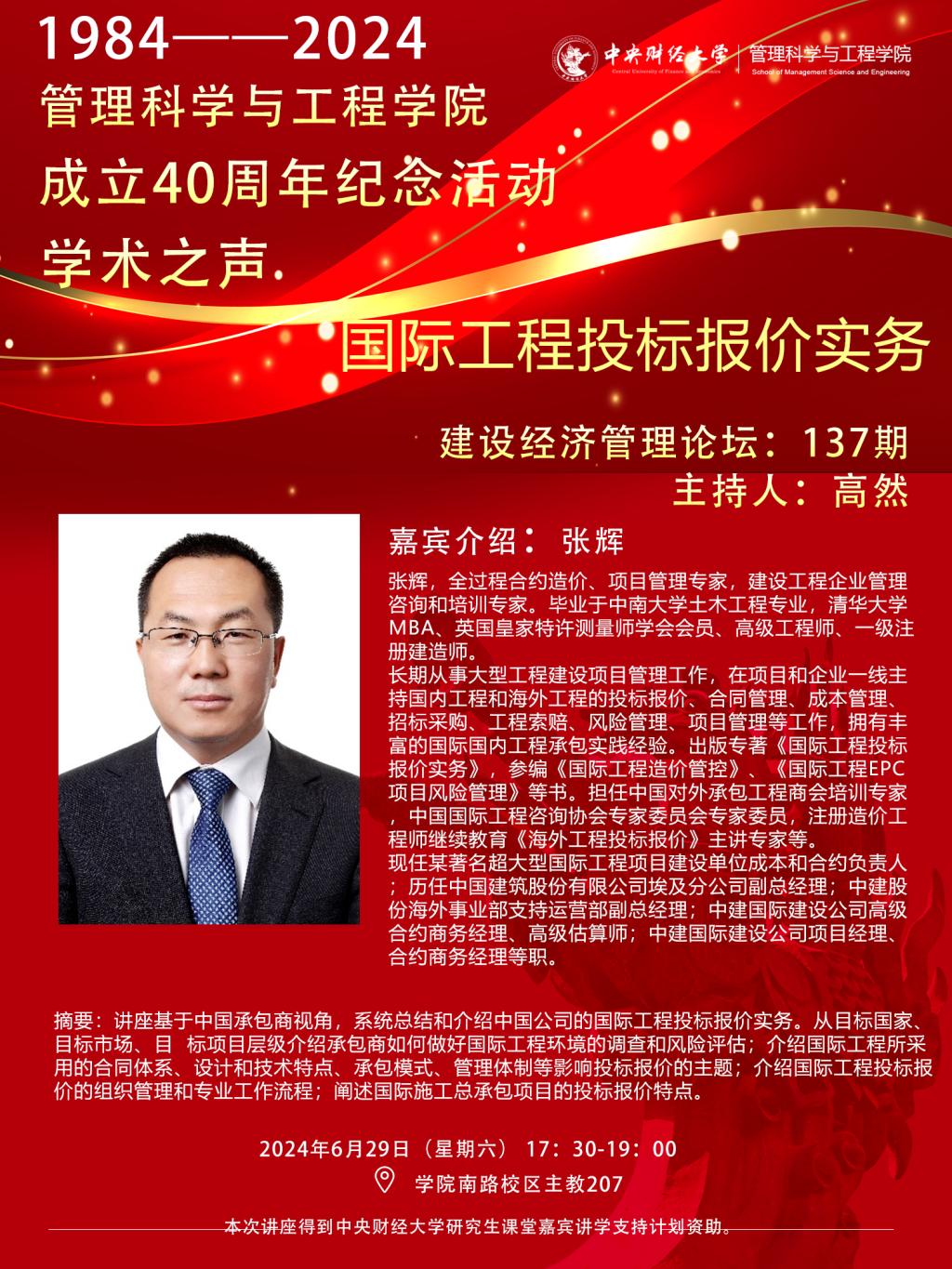 讲座基于中国承包商视角,系统总结和介绍中国公司的国际工程投标报价实务。从目标国家、目标市场、目标项目层级介绍承包商如何做好国际工程环境的调查和风险评估;介绍国际工程所采用的合同体系、设计和技术特点、承包模式、管理体制等影响投标报价的主题;介绍国际工程投标报价的组织管理和专业工作流程;阐述国际施工总承包项目的投标报价特点。