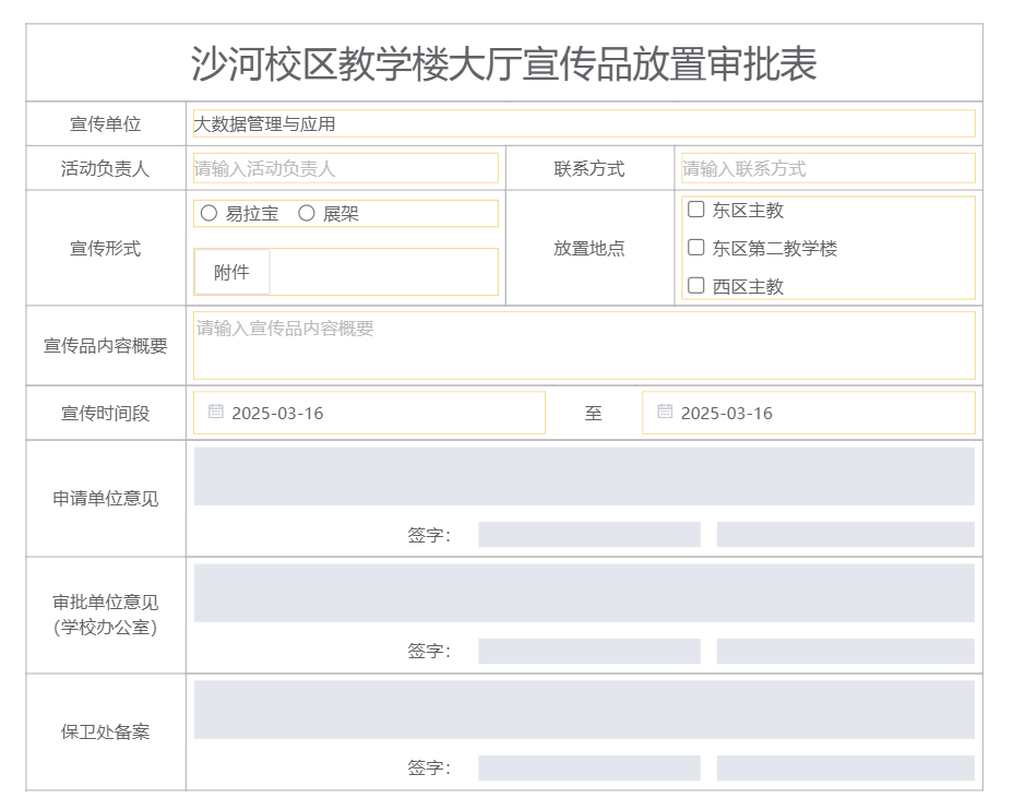 20.沙河校区教学楼大厅宣传品放置审批表