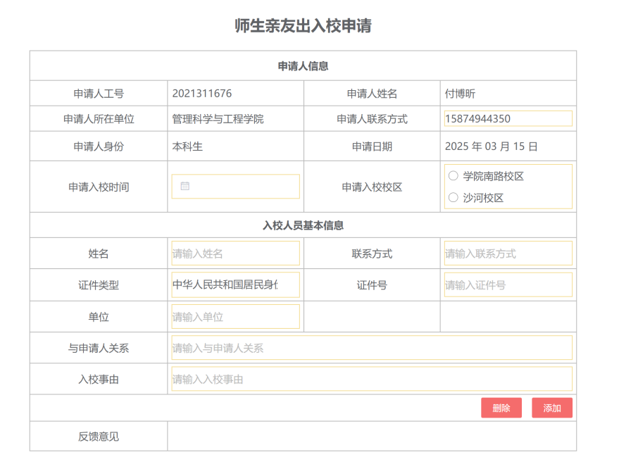 1.师生亲友入校申请(线上办理)