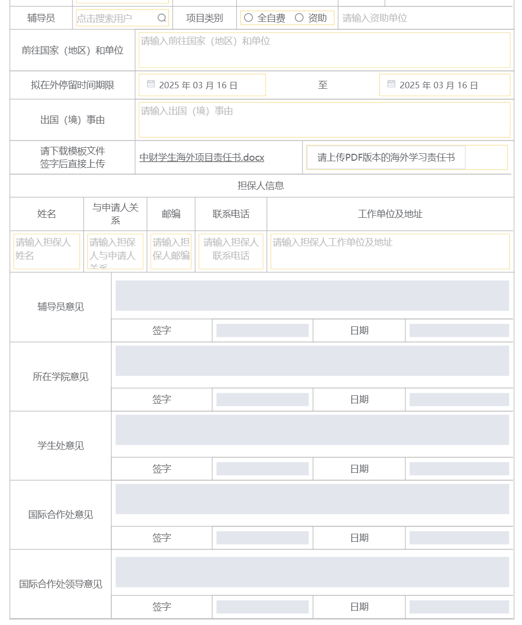11.赴国(境)外短期交流学习申请表(离校手续)