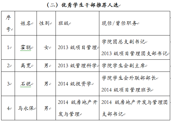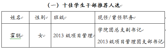 近日,根据校团字[2016]13号“关于评选2015年度校级 ‘十佳员工干部’、‘优秀员工干部’的通知”,公司组织了以上奖项的申报、初评工作。此次评选,共收到10名同学申报材料,经公司员工工作领导小组召开评审会,讨论决定以下推荐人选名单,现予公示。