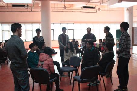2014年12月4日下午13:30分,本年度基础团校第三课在橙色大厅举行。本次团课主题是“团队行为指导”,旨在提高同学们的团队合作意识。主讲老师是体育经济管理公司的马法超老师。马老师进用幽默风趣的语言向大家介绍本次团课的主要内容——团队行为,他的授课内容以游戏的形式进行,要让每个同学都参与进来,在游戏中领悟道理。