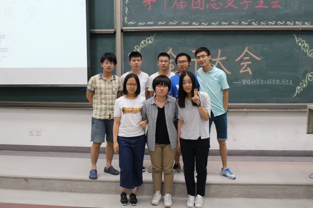 在主持人马铁力风趣幽默的开场过后,第十届主席团代表戴子钧上台发言。他首先提出了一个问题:假如给你一台时光机,让你回到一年前刚刚加入管工员工会的时候,你会做什么——搁下这个问题后,戴子钧展示了一些一年前刚刚进入大学,进入员工会的曾经的“小鲜肉”们当时稚嫩却朴实的感言以及来自学长学姐们的寄语。而后,他又以青协及体育部分管主席的身份对这两个部门的部长干事们传达了自己的叮嘱。说起这一年来在主席团的任职经历,戴子钧感慨万千,值此新老交替的换届之时,他将自己曾经的部长送给自己的“员工会三句诗”送给了台下将继续为了管工员工会奋战下去的各位学弟学妹——