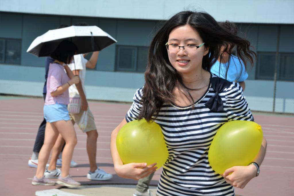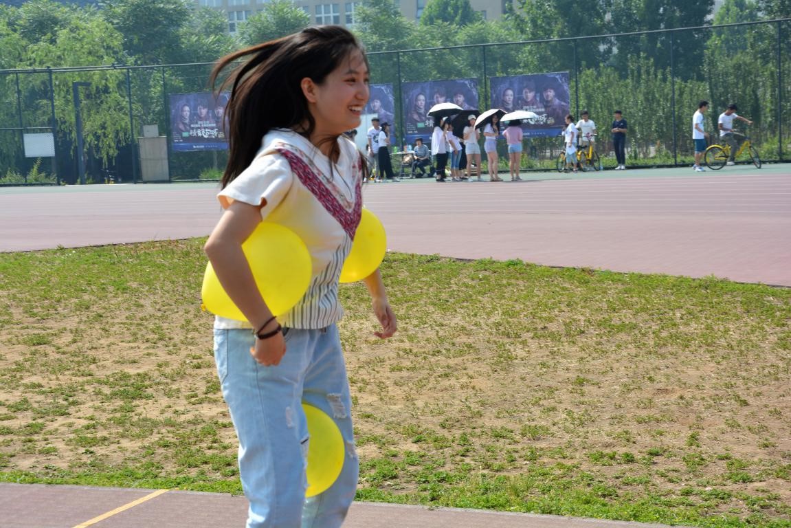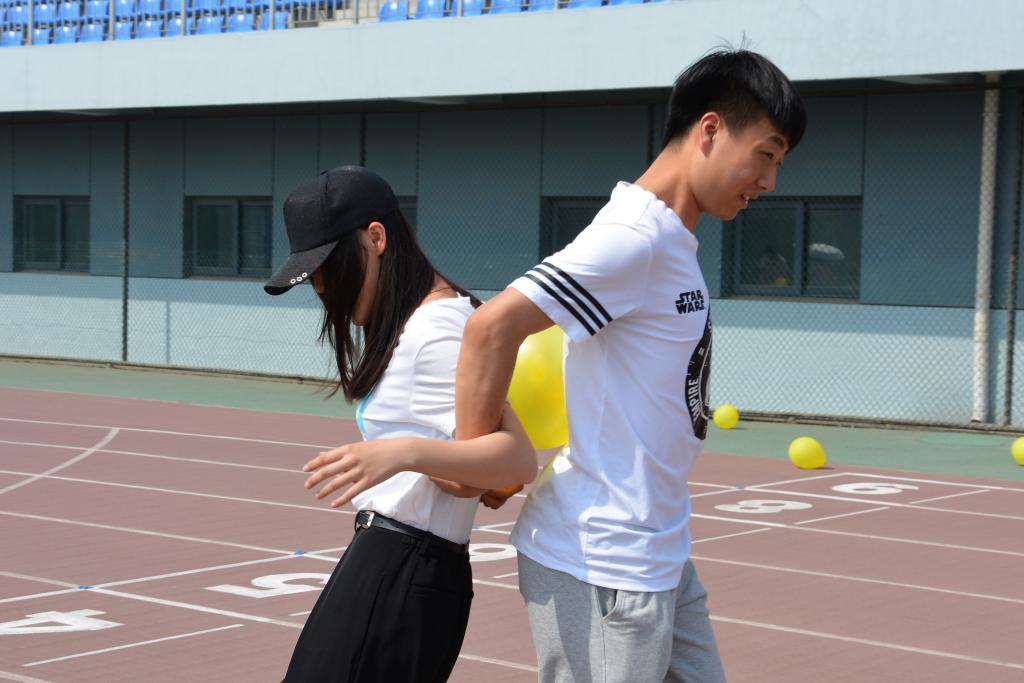 小编认为这是难度系数最低也是耗时最少的一个项目了。第二次与气球亲密接触,似乎已经熟络不少。四名小伙伴,两两组合进行背部夹球接力,喊着“一二一二”,迈着差不多的步子跳着前进,快速交接完毕后,重复方法前进,完美抵达终点
