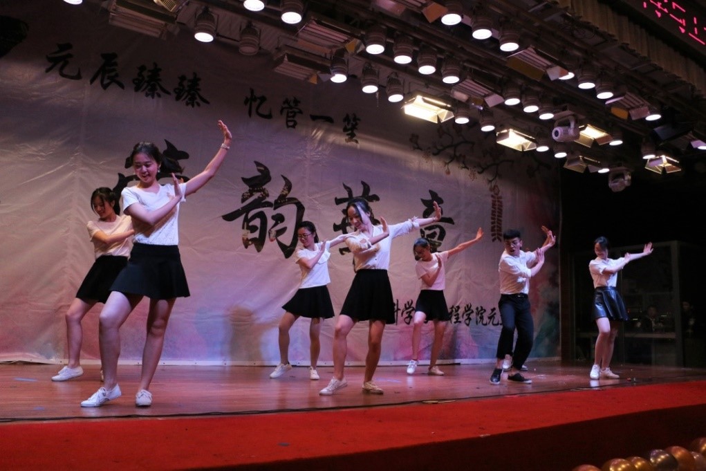 除了相声、歌曲之外,还有由“千里迢迢”从本部赶来的大四同学们带来的精彩舞蹈,舞动的身姿是她们洋溢的青春。