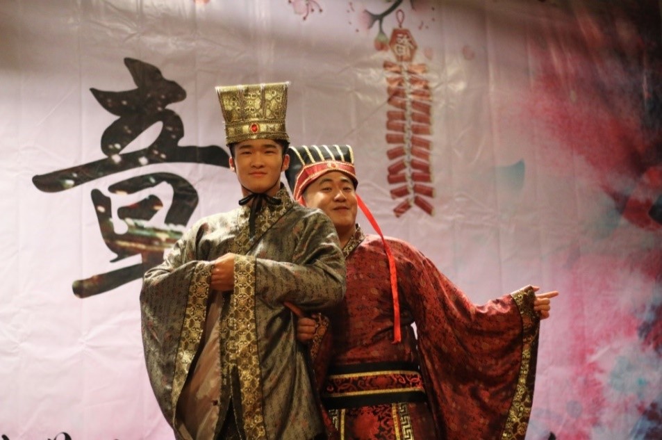 舞蹈之后,是管科14带来的一出默剧,讲述了在公交车上不甚正义的普通人与小偷斗智斗勇的故事,演员们中世纪英国绅士的装扮令人不禁想起了卓别林的经典造型,风趣幽默的表演中蕴藏着朴实的道理,传达了平凡人心中的真善美。随后,精彩的节目暂时告一段落,熟悉的背景音乐突然响起,原来晚会节目组还邀请了公司中来自各个少数民族的同学带来各具民族特色的拜年方式,从蒙古族,维吾尔族,藏族,土家族的独特语言,到彝族,哈萨克族精彩的才艺展示,再到来自宝岛台湾的新春问候,晚会的气氛更加融洽。