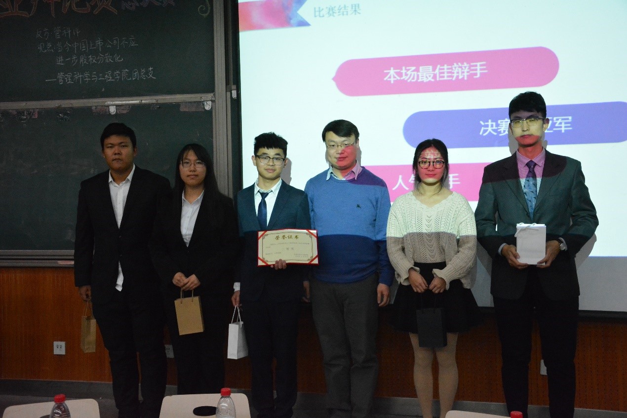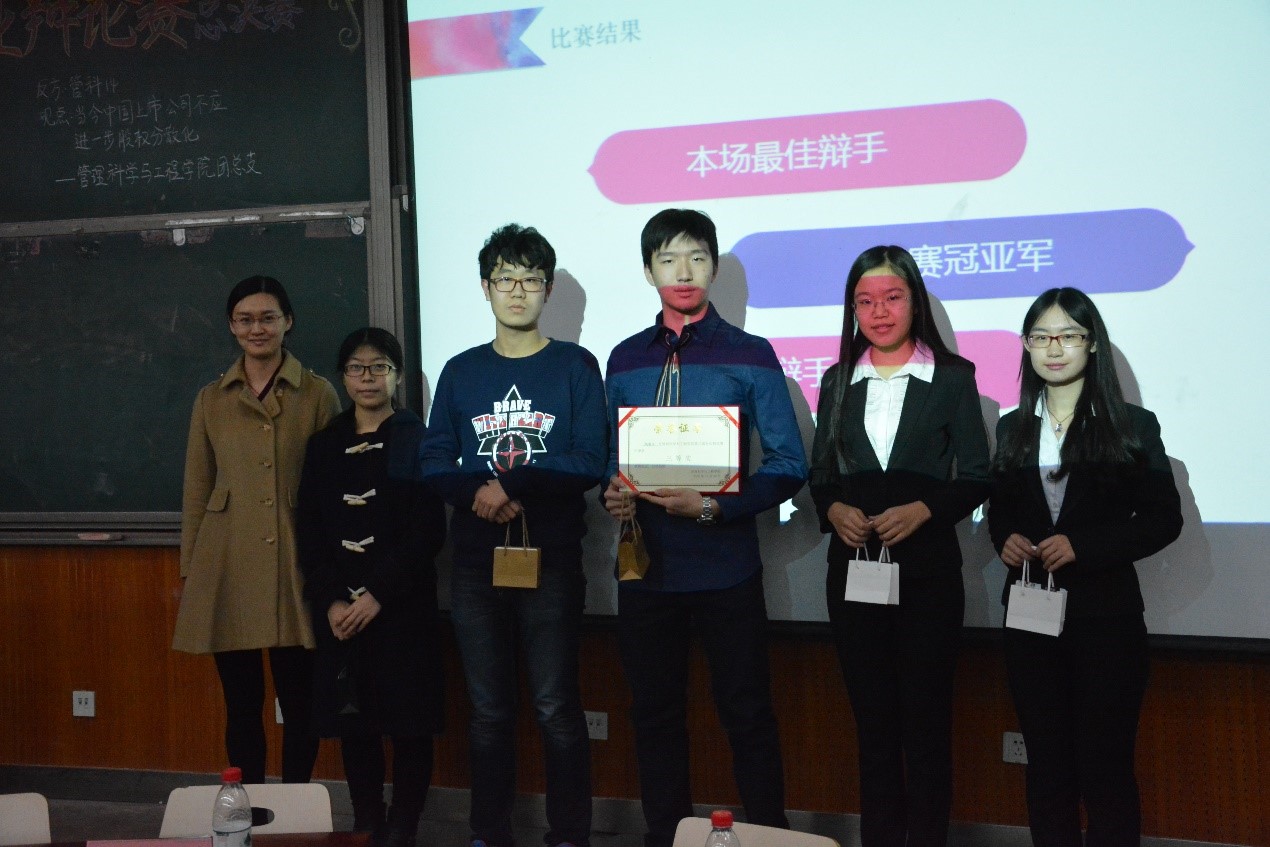 最终,经过评委的讨论和现场点评,管理科学14以其优异的表现获得比赛的胜利,正方四辩李天昊凭借其敏捷缜密的思维和沉稳的气质获得最佳辩手的荣誉。