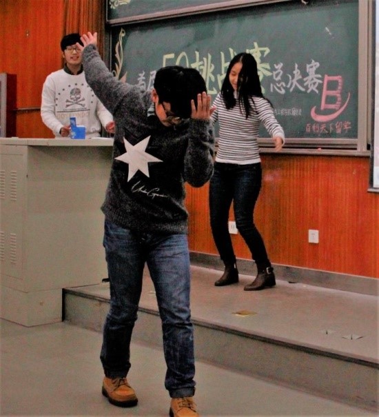 三分钟的展示中,每只参赛队伍都以独特的方式向观众和评委展现属于他们自己的风采。唯美的视频剪影,精心排练的话剧,幽默风趣的三句半,热情洋溢的歌舞,虽然每组表演风格各异,但都可以看出选手们对比赛的用心之深以及各个小组的团结与活力。
