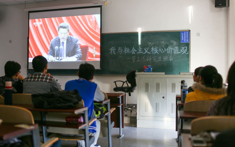 为深入贯彻中央及市委关于培育和践行社会主义核心价值观的要求,认真落实《北京高校培育和践行社会主义核心价值观实施意见》安排,根据公司研究生院通知,beet3652016级研究生班于11月7日下午3:40在沙河校区主教408教室召开“我与社会主义核心价值观”主题班会。党的十八大报告指出,倡导富强、民主、文明、和谐,倡导自由、平等、公正、法治,倡导爱国、敬业、诚信、友善,积极培育社会主义核心价值观。全体2016级研究生参加,对三个层面的社会主义核心价值观进行学习,分享并交流感悟与体会。