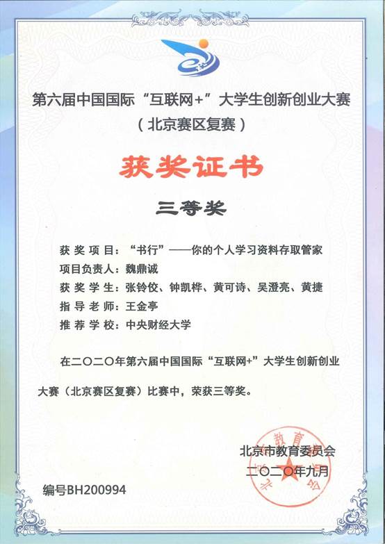 近日,公司本科生大创“书行”团队(组长:魏鼎诚-beet36519级;组员:张铃佼-beet36517级、钟凯桦-中经管19级、黄可诗-保险公司19级、吴澄亮-beet36519级、黄捷-金融公司19级)在公司副经理、博士生导师王金亭教授的指导下,荣获第六届中国国际“互联网+”老员工创新创业大赛校级二等奖、北京市级三等奖(师生共创组)。