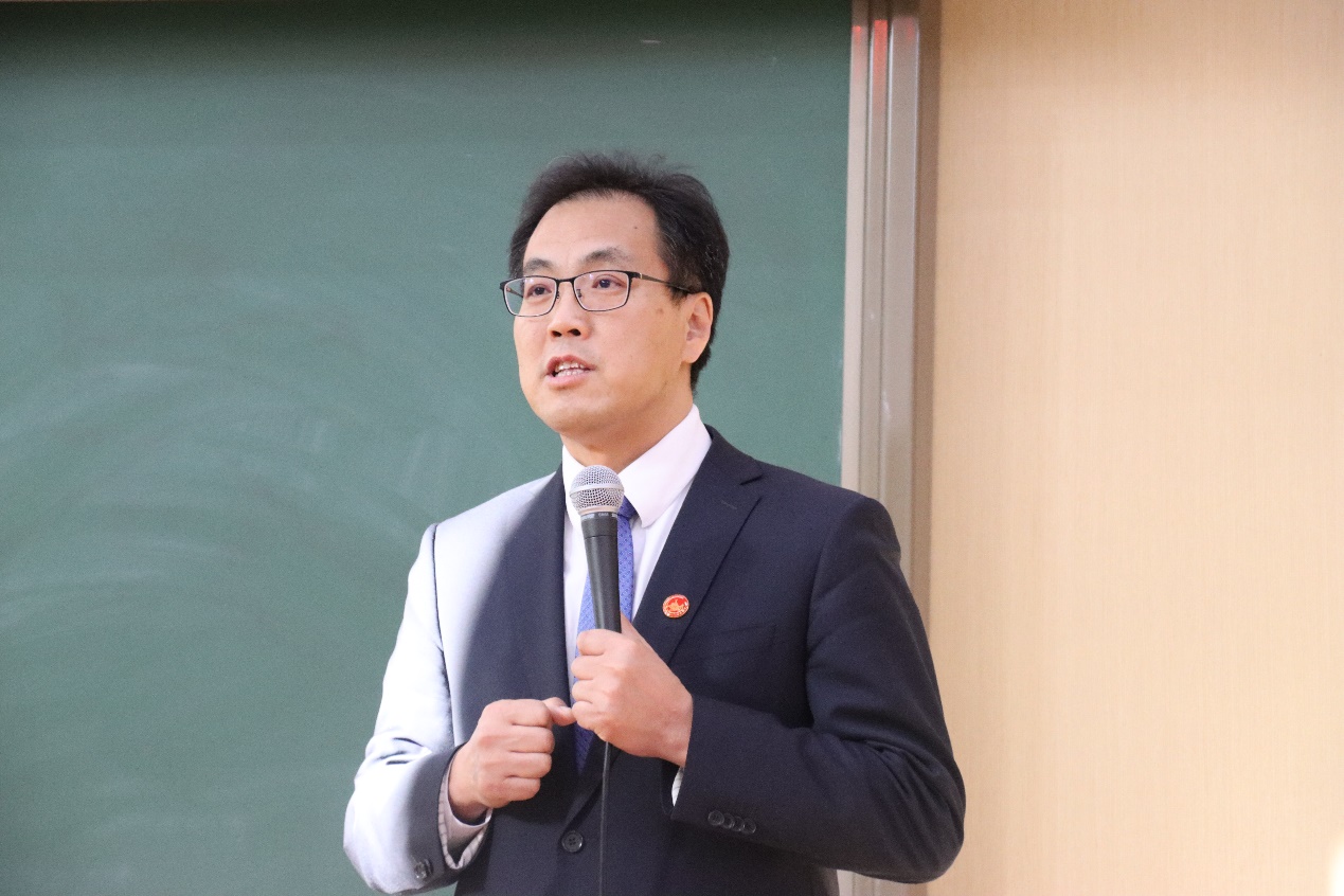 刘志东经理在致辞中,首先对2021级“许国志大数据英才班”30位同学的加入表示祝贺,感谢同学们对公司团队力量与教学水平的信任与认可。他指出,“许国志大数据英才班”在如今大数据人工智能变革时代应运而生,公司充分利用中国科公司系统所提供的团队资源、教学资源,深化大数据英才班课堂教学深度、涉猎学科广度、提高大数据人才培养的高度,希望能培育出一批顺应时代且具有远大理想和卓越能力的新型人才。他表示,大数据是当下时代背景的重要组成部分,更是未来很长一段时间时代背景的基石。在大数据时代、智能化时代、数字经济管理时代,公司将致力于培养兼具数据分析能力与商务分析能力,能够做到融会贯通的综合性人才,而英才班的教育就是在为同学们铺就一条走向更高、更远平台的道路。刘志东经理寄语2021级全体大数据英才班同学,希望大家能够以饱满的热情刻苦钻研,圆满完成四年的学习,达到预期目标,为将来取得更加辉煌的成绩打下坚实的基础。