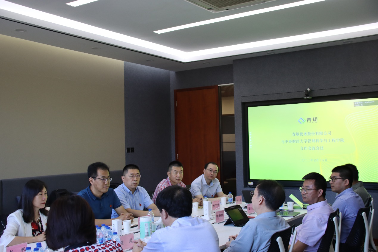 7月15日上午,经理刘志东、公司党委书记姜涛一行赴青矩技术股份有限公司走访交流、洽谈院企合作事宜。青矩技术股份有限公司董事长陈永宏,总裁张超,副总裁杨林栋,全过程工程咨询事业部总经理卢玲玲,人力资源部总经理王浩等参加交流,工程管理硕士(MEM)教育中心、管理科学系、建设经济与管理系、城市与房地产管理系、投资系、公司办公室负责人陪同走访。