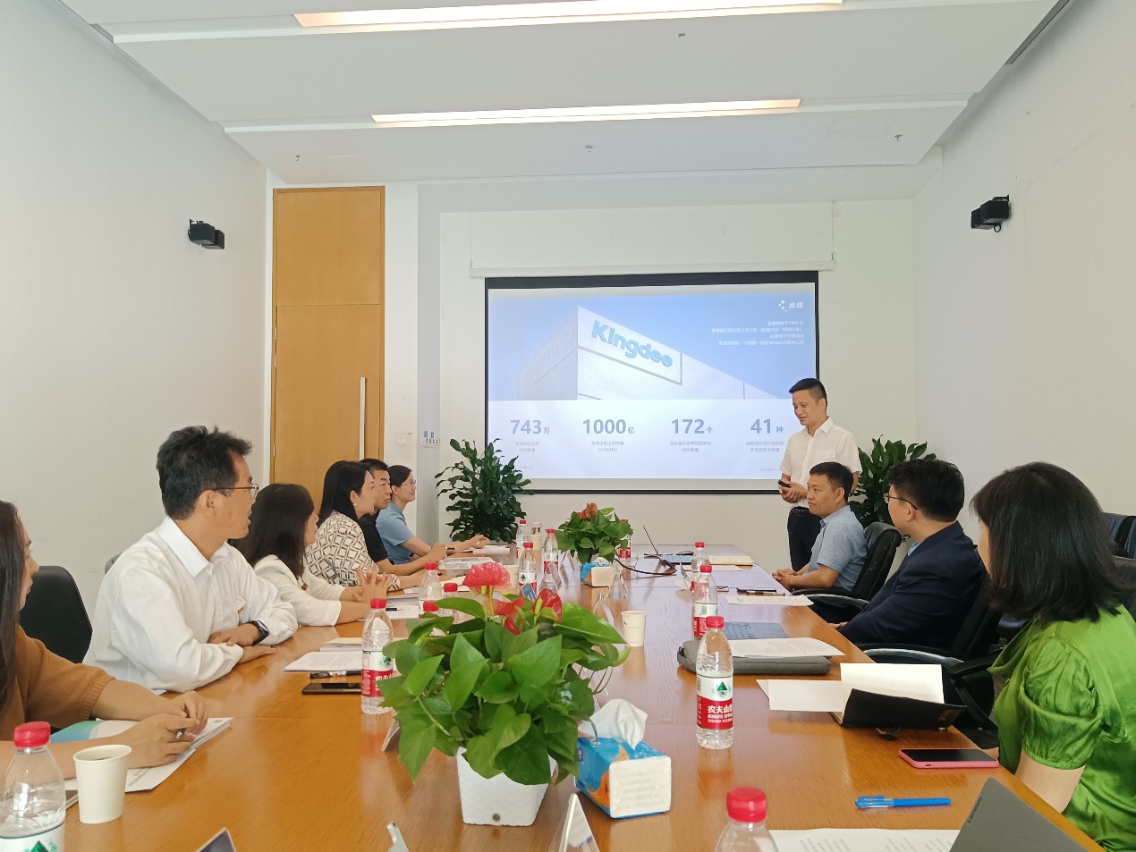在座谈中,赵治国向刘志东、姜涛一行到访表示热烈欢迎,并介绍了金蝶的企业文化、四次转型、从ERP到EBC产品特色,并强调了金蝶对教育的重视,以及金蝶精一“引领数字化人才培养”的战略布局;贺玉刚总经理和朱海勃经理分别详细展现了金蝶云智能分析解决方案,以及在房地产和供应链金融上的应用案例及前景。